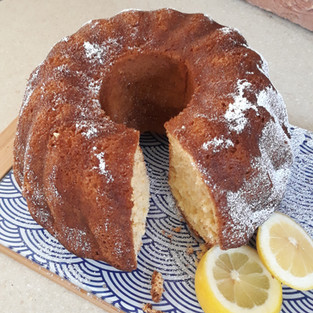Gotową babkę oblej sokiem z cytryny i oprósz cukrem pudrem.